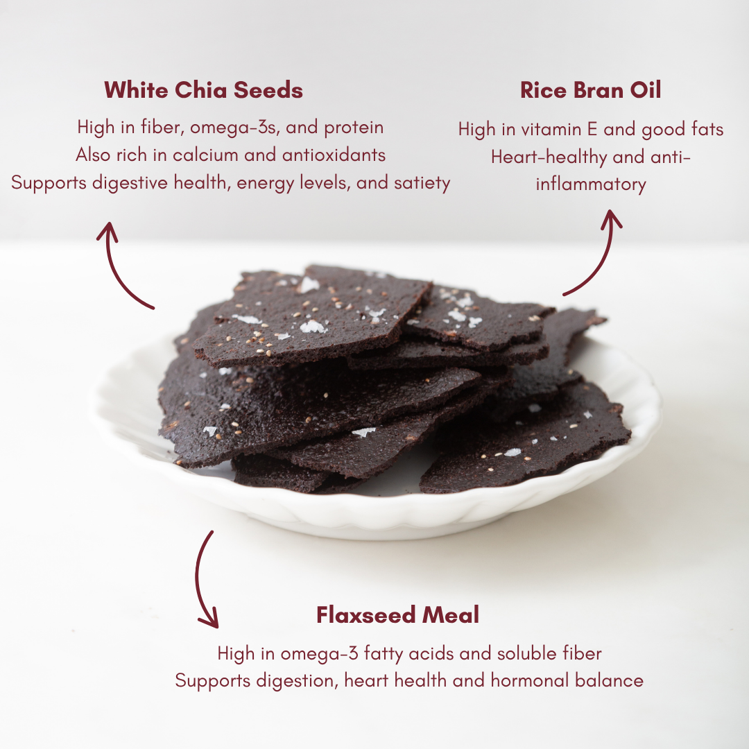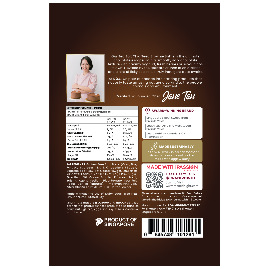 Enhance your snacking journey with our Sea Salt Chia Seed Brownie Brittle, a delectable reinterpretation of our most popular Midnight Cake. Indulge in a luscious, chocolatey brownie treat sprinkled —now crisped to perfection in a brittle, guaranteed to elevate your taste buds to new heights.